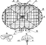 Рис. 6Основний парашут 1-сектор; 2-накладка; 3-каркас; 4-петля; 5-стропа 1А; 6-стропа 28; 7-стропа 1Б; 8-стропа 15А; 9-стропа 15Б; 10-стягуюча стрічка; 11-вуздечка