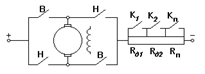 Построив естественные характеристики и назначив М1 £ Мдоп, подбирают искусственные характеристики так, чтобы М2 > Мс; в примере указаны две пусковые (Rд1 и Rд1 + Rд2) и одна тормозная (Rд1 + Rд2 + Rп) характеристики. Контакты контакторов В и Н определяют направление вращения, контакты К1, К2 и Кп, размыкаясь, вводят в цепь соответствующие резисторы. Стрелками на диаграмме указан ход процессов пуска и реверса. Резисторы Rд1, Rд2 и Rп могут использоваться и в целях регулирования скорости. Date: 2015-08-06; view: 1187; Нарушение авторских прав |