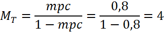 Для того, чтобы экономика достигла равновесного состояния, фактический доход должен быть увеличен на: ΔY=4200-4000=200 ден. ед. Определим величину необходимых дополнительных правительственных расходов: