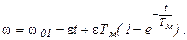 где e – ускорение, характеризующее темп изменения w0; при 0 < t < t1 wс(t) = et; при t > t1 wс(t) = w01 = сonst. Излом функции wс(t) при t = t1 свидетельствует о том что переходный процесс состоит из двух этапов, и его необходимо рассчитать отдельно для каждого участка. I этап (0 < t < t1). Приняв, что при t = 0 wнач = 0 и подставив в (4.18) а = 0, k = e, получим