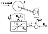 В данном случае переходной процесс определяется двумя инерционностями – J и Lв и описывался двумя дифференциальными уравнениями первого порядка, одно из которых было нелинейным. Эти уравнения не имели комплексных корней, в чем отразилась физическая невозможность обмена энергией между двумя накопителями.