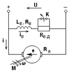где Uв – напряжение на обмотке возбуждения; Rв, Lв – активное сопротивление и индуктивность цепи возбуждения; iв – текущее значение тока возбуждения.