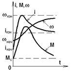 Рис. 4.18. Переходный процесс пуска при реактивном Мс