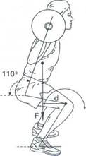 Мм -250 разгибание Рис. 12 Мышечный момент (Мм) в коленных суставах в приседаниях со штангой на плечах (масса снаряда - 80 кг). F - сила тяжести головы, рук, туловища, бедер и штанги; d - плечо этой силы. Так, в первой позе туловище сильно наклонено вперед, и как следствие этого результирующий момент силы мышц в коленных суставах направлен на их сгибание, т. е. нагружаются мышцы задней поверхности бедра. И наоборот, при небольшом наклоне туловища вперед основная нагрузка ложится на мышцы - разгибатели коленных суставов. Причина в том, что величина и направление момента силы в суставе зависит от момента силы тяжести звеньев тела и штанги, действующих на данный сустав. Несмотря на то, что в рассматриваемом примере суммарная сила тяжести звеньев тела и снаряда не изменяется, плечо этой силы зависит от положения туловища и бедер. Эта сила приложена в общем центре масс всех звеньев тела, которые расположены выше коленных суставов, и штанги. Таким образом, нагрузку можно регулировать не только массой снаряда, но и плечом внешне действующей силы. Date: 2015-08-06; view: 457; Нарушение авторских прав |