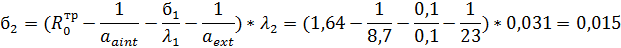Находим толщину стены, требуемую по энергосбережению:
