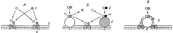 Рис. 3.3. Роль ферментно-транспортных комплексов в предотвращении конкуренции между мономерами на стадии всасывания (по: Уголев, 1985).