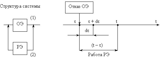 где T0i = M(Ti ) – МО наработки до отказа i -го элемента системы. Рассмотрим систему, состоящую из основного элемента (ОЭ) и одного резервного (РЭ). ОЭ и РЭ являются невосстанавливаемыми объектами.