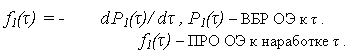 События, соответствующие работоспособности системы за наработку (0, t): A = {безотказная работа (БР) системы за наработку (0, t)}; A1 = {БР ОЭ за наработку (0, t)}; A2 = {отказ ОЭ в момент t > Событие A = A1 P(A) = P(A1 ) + P(A2 ), где P(A) = Pс(t); P(A1 ) – ВБР ОЭ к наработке t, P(A1) = P1 (t); P(A2) = Pр (t) – вероятность отказа ОЭ и БР РЭ после отказа ОЭ. При известном законе распределения наработка до отказа ОЭ вычисление P1 (t) не представляет сложности. Событие A2 является «сложным» событием, включающим в себя простые: A21 = {отказ ОЭ при A22 = {БР РЭ с момента Событие A2 осуществляется при одновременном выполнении событий A21 и A22: A2 = A21 События A21 и A22 являются зависимыми, поэтому вероятность события A2 P(A2) = P(A21) · P(A22| A21 ). Соответствующие вероятности: 1) P(A22| A21 ) = P2 (t - где P2 (t) – ВБР РЭ к наработке t. 2) для определения P(A21 ) рассмотрен малый интервал ( f1( Для получения ВО ОЭ к моменту Поскольку ВО, как функция распределения случайной наработки до отказа, равна