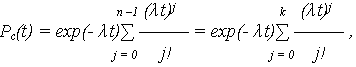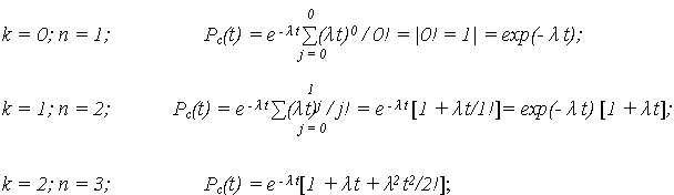 При кратностях резервирования k > 5 распределение наработки до отказа системы с ненагруженным резервом становится близким к нормальному независимо от законов распределения наработки, составляющих систему элементов. При идентичных ОЭ и (n -1) РЭ и экспоненциальном распределении наработки элементов для ВБР системы с ненагруженным резервом и целой кратностью резервирования k = (n - m)/m, где m = 1: