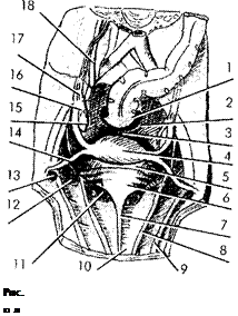 ности медиального края т. iliacus в подвздошное углубление, вместе с этой мышцей выходит через lacuna musculorum на бед- ро и прикрепляется к trochanter minor. Функ- ция: сгибает бедро и од- новременно поворачива- ет его наружу; при фик- сированном бедре сгиба- ет поясничную часть по- звоночника, нагибая ту- ловище вперед; при одно- стороннем сокращении вызывает боковое сгиба-