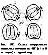 образом: 1) при вставлении в один из косых размеров (чаще в правый) плоскости входа в ма- лый таз головка описывает дугу в 45° или меньше; при этом ма- лый родничок поворачивается кзади, а большое темечко — кпе- реди (рис. 98); 2) при вставлении головки в поперечный размер плоскости входа в малый таз (не- зависимо от позиции плода) она поворачивается на 90° таким об- разом, чтобы сагиттальный шов переходил из поперечного в ко- сой (соответственно позиции), а потом в прямой размер плоскости выхода из малого таза; при этом малый родничок поворачивается к крестцу, а большой родничок - к лобковому сочленению (рис. 99). Если первоначальный зад- ний вид затылочного предлежа- ния переходит в передний вид (рис. 100), то поворот головки происходит таким образом: 1) при заднем виде второй позиции стреловидный шов поворачива- Биомеханизм родов при затылочных вставлениях /.оливки плода Т II Рис. 99. Схема внутреннего по- ворота головки на 90° (с I и II по- зиции) в задний вид Рис. 100. Схема внутреннего поворота головки на 135° (с I и II позиции заднего вида в пере- дний вид) ется по часовой стрелке, пере- ходя из правого косого в попе- речный, потом в левый косой и, наконец, в прямой размер плос- кости выхода из малого таза; 2) при заднем виде первой пози- ции сагиттальный шов головки поворачивается против часо- вой стрелки,переходя с левого косого сначала в поперечный, потом в правый косой и, нако- нец, в прямой размер выхода из малого таза; при этом малый родничок описывает большую дугу (около 135°) и останавли- вается около лонного сочлене- ния малым родничком. Date: 2015-08-06; view: 1439; Нарушение авторских прав |