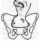Рис. 113. Переднеголовое вставление. Разгибание головки I степени Рис. 114. Переднеголовное вставление. Внутренний поворот головки WW*»**?»» му в процессе родов затылок с ма- лым родничком задерживается в плоскости входа в малый таз, а ли- цевая часть головки вместе с боль- шим родничком опускается быстрее и становится ведущей точкой. II момент: внутренний поворот головки (рис. 114). Головка, пройдя поперечный размер плоскости вхо- да в малый таз, опускается далее че- рез суженные прямые размеры в ши- рокой и узкой части. На тазовом дне дальнейшее продвижение головки в поперечном размере прекращается. В связи с тем, что в плоскости выхо- о да кости малого таза в меньшей сте- педи^охватывают головку и она име- " W *" - •.'д. ет больше пространства, то здесь происходит ее внутренний поворот таким образом, что лицо поворачи- вается кпереди, а затылок — кзади. При этом сагиттальный шов перехо-