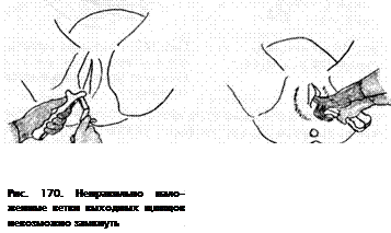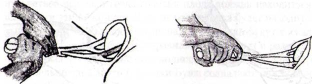 головки назад после окончания потуги. Для замыкания ветвей ет левую ложку 116 117 Рис. 166. Выходные щипцы. Начало введения правой