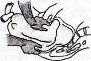 позиции противоположной пахо- вому сгибу. Указательный и сред- ний пальцы руки (одноименной второй ручке плода) акушер вво- дит во влагалище роженицы со сто-