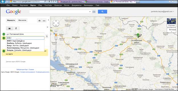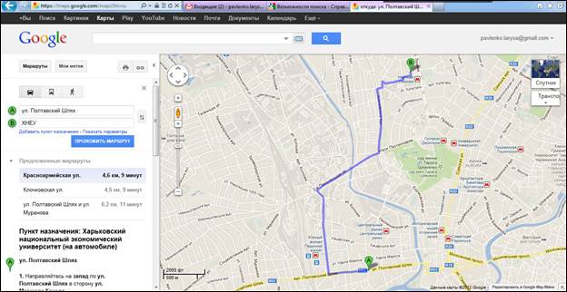 Рис. 45. Поиск пути между ул. «Полтавский шлях» и ХНЭУ