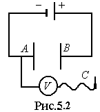 3. На одну клемму вольтметра подключают электрод, а на другую клемму - конец щупа С (рис.5.2). Вольтметр должен иметь сопротивление значительно большее, чем сопротивление участка среды между зондом и электродом.
