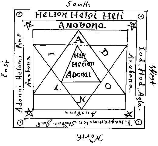 Заметим, что Первый Высший Мир зовется Хора Ориентис, или Восточный Высший Мир, и проводить эксперимент с ним следует в день и час Солнца. Сила и способности его ангелов в том, чтобы делать все вещи плодоносящими, усиливать рост и размножение животных и растений, облегчать роды и делать бесплодных женщин способными к зачатию. И вот их имена: АЛИМИЭЛЬ, ГАБРИЭЛЬ, БАРАХИЭЛЬ, ЛЕБЕС, ХЕЛИСОН. А также заметим, что не следует взывать к каким-то другим ангелам, кроме тех, что принадлежат к Высшему Миру, к которому вы взываете. На время своей работы поставьте четыре свечи на четыре подсвечника, но будьте осторожны, не зажгите их до начала операции.