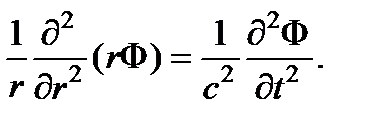 Введем вспомогательную функцию F = r Ф. Тогда последнее уравнение преобразуется к виду, аналогичному (1.10) и, следовательно, его общее решение представится в виде суперпозиции двух волн, бегущих во взаимно противоположных направлениях Возвращаясь к искомой функции Ф, получим Выражение описывает две сферические волны. Первое слагаемое представляет собой волну, движущуюся в направлении увеличения значений r, т.е. от центра, где расположен точечный источник. Такая волна называется расходящейся. Второе слагаемое описывает волну, движущуюся в направлении уменьшения значения r, т.е. к центру. Такая волна называется сходящейся. Значение Ф в фиксированный момент времени на сфере постоянного радиуса является постоянным. Date: 2015-08-06; view: 476; Нарушение авторских прав |