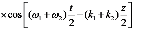 Электромагнитные волны распространяются со скоростью света независимо от частоты только в вакууме. В среде скорость электромагнитной волны меньше скорости света и зависит от частоты. Зависимость скорости волны от частоты называется дисперсией. Рассмотрим суперпозицию двух волн, частоты которых w 1 и w 2, а волновые числа k 1 и k 2: