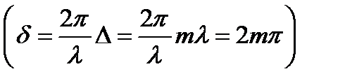где m - порядок интерференции, то колебания, возбуждаемые в точке обеими волнами, будут происходить в фазе Таким образом, условие есть условие возникновения интерференционных максимумов. В точках, для которых В случае, когда волны от источников распространяются не в вакууме, а в среде с показателем преломления n, в формуле под D следует понимать не геометрическую, а оптическую разность хода интерферирующих волн: D = n (r 2 – r 1). При этом l по-прежнему длина волны в вакууме. Date: 2015-08-06; view: 1809; Нарушение авторских прав |