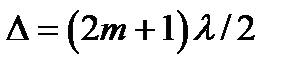 Р и с. 3.2 В области, где эти волны перекрываются - ее называют зоной интерференции - должна возникать система чередующихся максимумов и минимумов освещенности, которую можно наблюдать на экране. Обозначим разность расстояний r 2 и r 1 от источников до интересующей нас точки М как D = r 2 – r 1. Эту величину называют разностью хода. Если разность хода равна целому числу длин волн, т.е.: