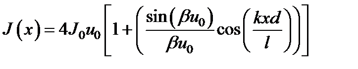 Р и с. 3.12 Если J (u) du – интенсивность света, испущенного с участка источника длиной du и в точке источника с координатой u, то вклад от этого участка в полную интенсивность интерференционной картины в точке x выражается формулой: где d задается равенством. Для полной интенсивности находим выражение: