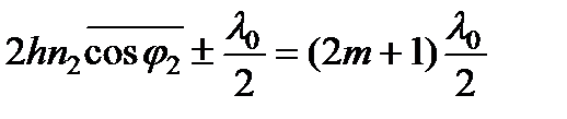 Р и с. 3.19 Учитывая изменение фазы на p при отражении на одной из поверхностей пластинки, получим из и, что в точке P будет находиться максимум интенсивности, если разность фаз кратна 2 p, или, что эквивалентно, при выполнении условия