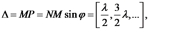 Из анализа соотношения вытекают условия образования дифракционных минимумов, интерференционных минимумов и интерференционных максимумов.
