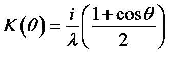 Р и с. 4.31 Применительно к задаче дифракции Кирхгоф предложил использовать следующие приближенные граничные условия для светового поля: в пределах отверстий поле таково, как если бы препятствий нет, а на теневой стороне экранов поле равно нулю. Ввиду малости длины световой волны эти приближенные условия обеспечивают достаточную точность вычислений. Для задачи о дифракции сферической световой волны на отверстии теория Кирхгофа дает следующий результат: Где Интеграл в точности совпадает с дифракционным интегралом Гюйгенса-Френеля. Однако вид функции K (q), предполагаемый Френелем, оказывается не совсем точным. График функции показан на рис. 4.32.