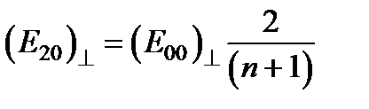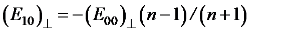 Так как. j 1 и j 2 вещественны (случай полного внутреннего отражения пока исключен), то тригонометрические функции, стоящие в правой части уравнений Френеля), также вещественны. Следовательно фаза каждой компоненты отраженной и прошедшей волн либо равна фазе соответствующей компоненты падающей волны, либо отличается от нее на p. Т.к. знаки (E 20)|| и (E 20)^ совпадают со знаками (E 00)|| и (E 00)^, фаза прошедшей волны равна фазе падающей. В случае же отраженной волны фаза будет зависеть от относительных значений j 1 и j 2. Если оптическая плотность второй среды больше, чем первой (e 2 > e 1), то j 1 > j 2; поэтому, согласно, знаки (E 10)^ и (E 00)^ различны и фазы отличаются друг от друга на p. При тех же обстоятельствах значение tg(j 1 – j 2) положительно, но знаменатель tg(j 1 + j 2) становится отрицательным для j 1 + j 2 > p /2, и в этом случае фазы (E 10)|| и (E 10)|| отличаются друг от друга на p. Аналогичное рассмотрение можно привести для случая, когда вторая среда оптически менее плотна, чем первая. Для нормального падения j 1 = 0 и, следовательно, j 2 = 0; тогда соотношения,, и примут вид