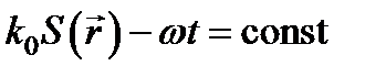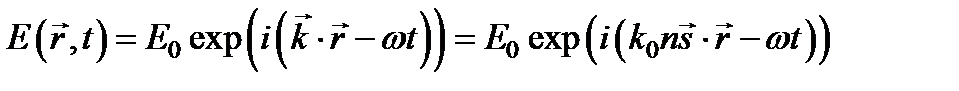 Рассмотрим переход от волновой оптики к геометрической в предельном случае исчезающе малой длины волны (l ® 0). Плоская волна характеризуется тем свойством, что ее поверхности постоянной фазы (волновые поверхности) представляют собой неограниченные плоскости, а направление ее распространения и амплитуда везде одинаковы. В общем случае световые волны таким свойством не обладают. Тем не менее часто световую волну можно приближенно рассматривать как плоскую в каждом небольшом участке пространства. Это возможно тогда, когда амплитуда световых колебаний и направление распространения волны почти не изменяются на расстоянии порядка длины волны. Волновые поверхности при этом имеют небольшую кривизну и на небольших участках пространства можно, как и у плоской волны, говорить об определенном направлении распространения, нормальном к волновой поверхности. Для характеристики этого направления вводят понятие лучей, т. е. линий, касательная к которым в каждой точке совпадает с направлением распространения волны. Геометрическая оптика, отвлекаясь от волновой природы света, описывает его распространение с помощью лучей. При этом оказывается, что поведение лучей при l ® 0 определяется теми же законами, что и для плоских волн: законы преломления и отражения, установленные для плоской волны, падающей на плоскую границу раздела, справедливы в приближении геометрической оптики при более общих условиях. Например, при падении луча на поверхность линзы направление, интенсивность и состояние поляризации отраженного и преломленного лучей можно найти из соответствующих формул для плоских волн. В плоской монохроматической волне, распространяющейся в изотропной однородной среде с показателем преломления n, зависимость напряженности поля от координат и времени имеет вид