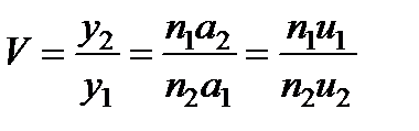 Для графического отыскания точки В 2 можно провести луч В 1 В 1 ║ А 1 О, тогда преломленный луч должен пройти через фокус F 2. Луч В 1 С, проходящий через центр С сферической поверхности, не изменяет направления своего распространения. Отношение линейных размеров изображения (y 2 = A 2 B 2) и предмета (y 1 = A 1 B 1) носит название линейного или поперечного увеличения V: При малых размерах А 1 В 1 и А 2 В 2 (параксиальное приближение) Для преломляющей системы n 1 и n 2 всегда положительно и поэтому знак V определяется знаком отношения а 2/ а 1. Для расположений, соответствующих действительному изображению, как на рис. 7.7, а 1 и а 2 имеют разные знаки, т.е. V – отрицательно и изображение перевернутое; для мнимых изображений – наоборот. Плоскость предмета A 1 B 1 и плоскость его изображения A 2 B 2 являются сопряженными по отношению к данной оптической системе. Сопряженные плоскости называются главными, если для них V = 1, т.е. изображение получается прямым и в натуральную величину. Из формул и следует, что для сферической поверхности главные плоскости совпадают между собой и представлены плоскостью, касательной к сфере в точке 0, т.е. а 1 = а 2 = 0. Поэтому фокусные расстояния сферической поверхности следует считать расстояниями от главных плоскостей до фокусов. На рис. 7.7 изображены также углы u 1 и u 2, определяющие максимальное раскрытие (апертуру) пучков, падающих на сферическую поверхность (угол 2 u 1), и сопряженных им изображающих пучков (угол 2 u 2). Предельное значение этих углов определяется требованием соблюдения условий параксиальности, когда изображение небольшого предмета будет передаваться без искажения. Для параксиальных лучей A 1 P Соотношение носит название теоремы Лагранжа-Гельмгольца и справедливо для параксиальных лучей. Получение четких изображений при употреблении пучков со значительной апертурой возможно лишь при выполнении условия синусов Аббе: Строение пучка, преобразованного оптической системой, может быть только таким, какое допускают условия или. Date: 2015-08-06; view: 470; Нарушение авторских прав |