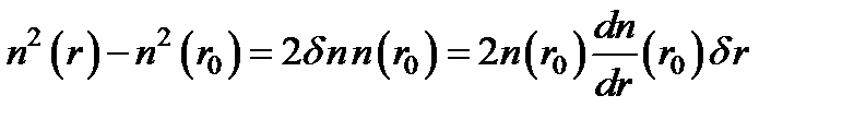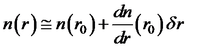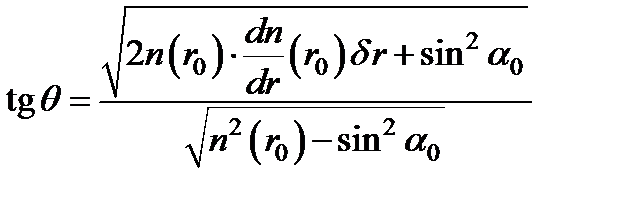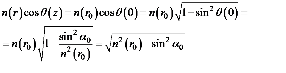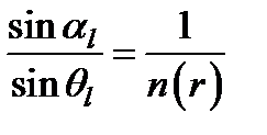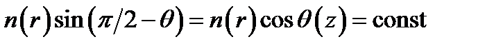 Закон преломления в произвольной точке траектории луча (например, в точке P) можно представить так: Применим полученное выражение к первой граничной и к какой-либо параллельной ей произвольной поверхностям: Отсюда выразим: Вследствие относительно малого изменения показателя преломления вдоль толщины слоя, можно представить как