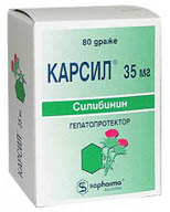Силимарин является действующим веществом в таких препаратах, как Карсил, Силибор, Силимарин-Гексал, Гепарсил, Левасил, Симепар и многих других. В них, как правило, указано количество чистого силимарина, дозировка – 70-100 мг три раза в день, при необходимости можно повысить дозу в 2 раза, курс лечения не менее 3 месяцев.
