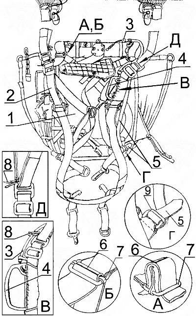 Отстегните автокнопки клапана двухконусного замка, клапан отогните. Вставьте в шланг, закрепленный одним концом на ранце, а другим на подвесной системе, трос звена pyчного раскрытия, а кольцо звена ручного раскрытия вложите в карман на подвесной системе (рис.25, В). Проденьте в пряжки на подвесной системе регулирующие ленты ранца (рис.25, Г). Примечания: 1. При применении парашютной системы с использованием переката свободных концов подвесной системы шнуры-блокировки свободных концов снимите. Для этого аккуратно распорите скрепки концов шнура, развяжите узлы и удалите шнуры-блокировки. Date: 2015-08-06; view: 387; Нарушение авторских прав |