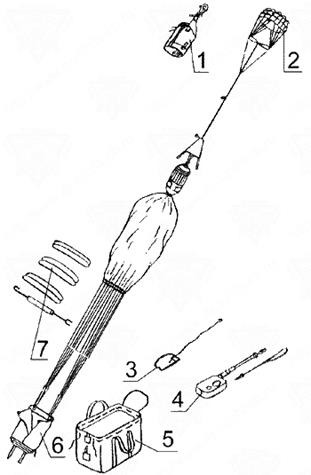 1 - камера стабилизирующего парашюта; 2 - парашют стабилизирующий; 3 - звено ручного раскрытия; 4 - прибор ППК-У-165А-Д; 5 - сумка переносная; 6 - ранец; 7 - принадлежности 2.2.1. Вытяните парашютную систему на всю длину (рис.13). Положите камеру стабилизирующего парашюта около ее вершины, а звено ручного раскрытия, переносную сумку, прибор ППК-У-165А-Д или АД-3У-Д-165 разместите у ранца. Разместите принадлежности (вилку с крючком и грузики) у нижней кромки купола основного парашюта. Произведите осмотр десантной парашютной системы в следующем порядке: - камера стабилизирующего парашюта; Date: 2015-08-06; view: 421; Нарушение авторских прав |