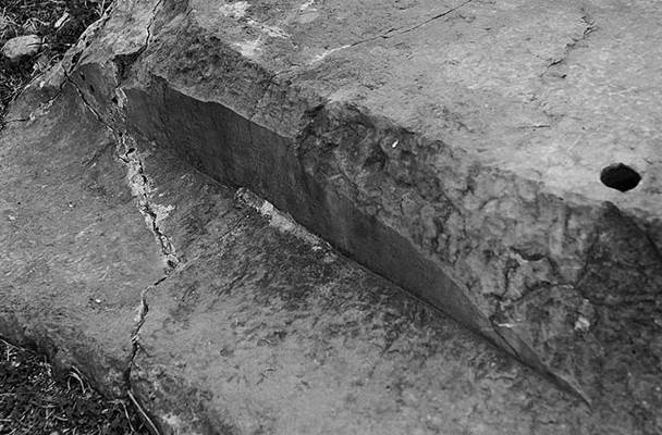 Рис. 23. Следы распиловки на блоке возле «гробницы» в Микенах