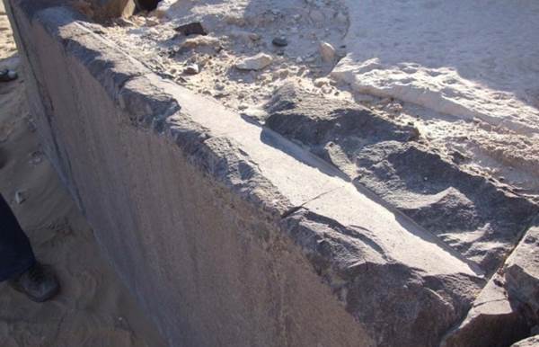 Рис. 9-ц. След дисковой пилы на блоке в храме Усеркафа