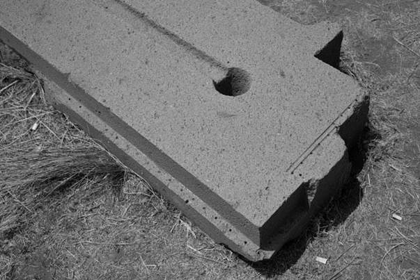 Еще один блок с аналогичными надрезами и отверстиями лежит неподалеку. Явно выполненный с использованием тех же самых инструментов, он озадачил еще больше. Две параллельные прорези начинаются фактически из ниоткуда – не от края, а с совершенно произвольного места на блоке, а отверстия расположены на разных гранях блока, образуя совершенно бессмысленную цепочку криволинейной формы.
