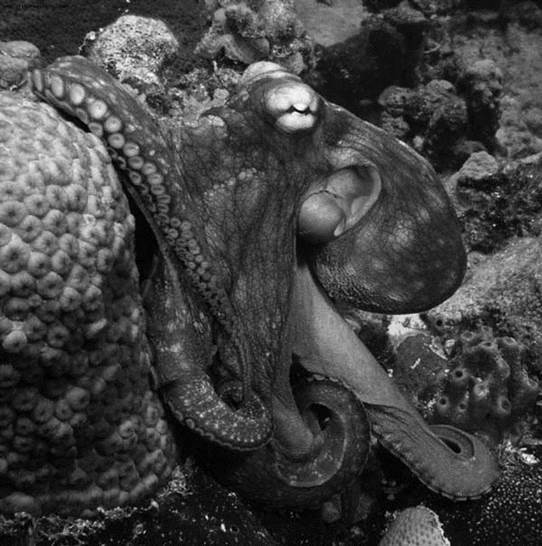 Рис. 60. Осьминог – обладатель голубой крови Наукой уже давно установлено, что окружающая среда способна весьма сильно влиять на элементный состав живых организмов. При длительном изолированном существовании их в тех или иных окружающих условиях возникает изменчивость – появление физиологических рас, которое может происходить даже без видимых внешних изменений, но сопровождается изменением химического состава организма. Появляются химические мутанты с изменением в ядрах клеток числа хромосом и т.п.; а изменчивость может приобрести наследственный характер. Ясно, что в условиях дефицита какого-либо элемента эволюция пойдет по пути замены его на другой, способный обеспечить те же функции, но находящийся в достатке. У нас, судя по всему, эволюция в ходе развития живого мира переориентировала организмы на железо, которое составляет основу дыхательных пигментов большинства живых видов. Значительная часть железа находится в крови. 60-75% этого металла связано с гемоглобином, белковая часть которого «блокирует» окисление железа из двухвалентного в трехвалентное состояние, поддерживая таким образом его способность связывать молекулы кислорода. Гемоглобин же входит в состав красных кровяных клеток – эритроцитов (см. Рис. 24-ц), составляя более 90% их сухого остатка (около 265 млн. молекул гемоглобина в каждом эритроците), что обеспечивает высокую эффективность эритроцитов в переносе кислорода.