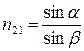 Относительный показатель преломления двух сред равен отношению скорости распространения света в первой среде