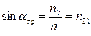Когда свет распространяется из оптически более плотной среды в оптически менее плотную, т.е. Приближение угла падения