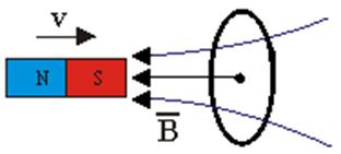4. Замкнутый проводящий контур помещен в неоднородное магнитное поле , созданное движущимся постоянным магнитом