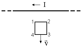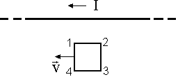 При движении рамки параллельно проводнику со скоростью V, в рамке...