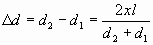 Раскрывая скобки и упростив выражение, получаем Используя формулу сокращенного умножения, получаем Найдем геометрическую разность хода Т.к. d2+d1= 2 L, следовательно разность хода равна: Максимум: Минимум: Опр.: расстояние между двумя максимумами или минимумами называется шириной интерференционной картины (x) Date: 2015-08-06; view: 1776; Нарушение авторских прав |