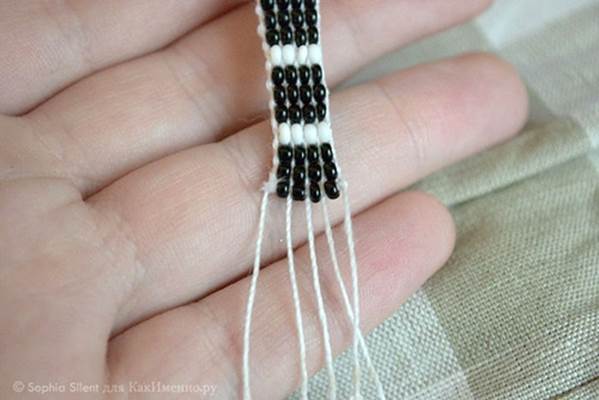 9. Чередуем цвета бисеринок в зависимости от узора.