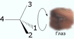 R,S-Система основана на определении старшинства заместителей вокруг хирального центра согласно "правилу старшинства". По этому правилу четыре заместителя получают номера, 1, 2, 3 или 4 (заместитель под номером 1 имеет высший порядок). Надо мысленно сконструировать треугольник из групп 1, 2 и 3 и представить четвертую группу (поместив ее позади хирального центра) за этим треугольником. Если при движении по часовой стрелке вокруг оси, соединяющей хиральный центр с 4-м заместителем, сохраняется последовательность 1-2-3, конфигурация хирального центра определяется как R (от латинского rectus - правый). Если старшинство заместителей понижается в том же порядке при движении против часовой стрелки, система имеет конфигурацию S (от латинского sinister - левый). Энантиомерные хиральные центры обозначаются R и S. Согласно правилу старшинства, наиболее существенным является следующее: 1. Атом с большим атомным номером является старшим (т.е. имеет относительное старшинство) относительно атома с меньшим атомным номером. 2. Большее массовое число имеет преимущество перед меньшим. Этот пункт относится к изотопам. 3. Несвязанные электроны уступают старшинство атомам и имеют более низкий порядок, чем, например, атом водорода. Date: 2015-08-06; view: 618; Нарушение авторских прав |