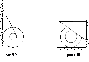1. К гвоздю, вбитому в стенку, привязана нить, намотанная на катушку. Катушка висит, опираясь на стенку (рис.5.9). Нить составляет со стенкой угол 30о. Внутренний радиус катушки равен 1 см, внешний – 10 см. Найдите минимальное значение коэффициента трения между стенкой и катушкой, при котором катушка неподвижна. (0,2) 2. На катушку, лежащую на горизонтальном столе, давит клин, который может смещаться только вдоль вертикальной плоскости (рис.5.10). Коэффициент трения катушки о клин и стол равен μ. При каком значении коэффициент трения μ катушка сдвинется влево, вращаясь против часовой стрелки? Силой тяжести, действующей на катушку пренебречь. (R cosa/(R sina + r))