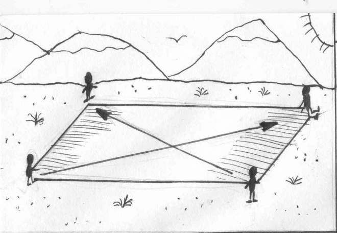 Другие советы по укладке рюкзака: - Не оставляйте пустых мест в рюкзаке. Забивайте щели между крупными предметами. - Если вы несете котлы, используйте их для хранения мелких предметов (положите в них хлеб, консервные банки, личную посуду). - Кружку и ложку держите под рукой, чтобы их можно было достать в любой момент. - Продукты, предназначенные для перекуса, храните сверху. - Сминайте пустые полуторалитровые пластиковые бутылки, так они занимают меньше места в рюкзаке. Укладка мягкого рюкзака является наиболее сложным и ответственным занятием. Здесь очень важно правильно уложить «спину» рюкзака. Именно у этого типа рюкзака есть одна важная особенность: любая вещь, положенная неправильно в мягкий рюкзак, обязательно доставит вашей спине массу неприятных минут. Для того, чтобы не оказаться в положении больного карлика, перед укладкой мягкого рюкзака, прочитайте еще раз эти рекомендации: · Положите рюкзак на пол лямками вниз. · Возьмите спальник или одеяло, сложите его по площади рюкзака и аккуратно положите так, чтобы спальник (одеяло) закрывало спину и дно рюкзака. Не забудьте при этом равномерно распределить спальник (одеяло) по всей площади рюкзака, вложите крайние углы спальника (одеяла) в углы рюкзака. · Сверху спальника на дно рюкзака можно положить палатку или тент, рядом – личные вещи. Котлы, ножи, топоры кладутся как можно дальше от спины. · Теплоизоляционный коврик (подстилка), как правило, подвязывается под клапан или дно рюкзака. Укладка полужесткого рюкзака гораздо легче. · Полужесткий рюкзак укладывается в стоячем положении. Сначала в рюкзак вкладывается теплоизоляционный коврик. Он держит форму рюкзака. Затем большой пакет, в который и укладываются вещи. Тяжелые вещи лучше класть в центр и к спине – это позволит вам уравновесить рюкзак, сделает легче процесс надевания рюкзака. Вещи в полужесткий рюкзак укладываются по окружности слоями. Поэтому спальники, палатки лучше скатывать и в таком скатанном виде помещать в рюкзак. Следите за тем, что бы дно рюкзака после укладки было ровным – это позволит рюкзаку стоять не падая, что у большинства туристов считается хорошим тоном. Следите за тем, что бы в рюкзаке не было свободного пространства. Безжалостно забивайте все «дыры» в укладке. Старайтесь уравновешивать рюкзак - следите за тем, чтобы со всех сторон вещи, укладываемые в рюкзак, имели одинаковый вес (например, если с одной стороны рюкзака вы кладете техническую аптечку, на другую сторону положите 2-3 консервные банки или пакет с картошкой). Уравновешенный рюкзак легче нести, легче надевать, на привалах такой рюкзак не падает, а, следовательно, не пачкается (и ни у кого из ваших товарищей не возникнет мысли сесть на него). Топоры, саперную лопату, стойки от палатки можно поместить в пространство между ковриком и тканью рюкзака или приторочить сбоку снаружи. Жесткий рюкзак укладывается также как и полужесткий. Требования к нему ещё более занижены. Наличие рамы у жесткого рюкзака позволяет обращать меньшее внимание на укладку спины, на наличие теплоизоляционного коврика внутри рюкзака. Но и здесь при укладке необходимо соблюдать правила, касающиеся размещения вещей в рюкзаке и порядок укладки. Лямки регулируются в соответствии с ростом и полнотой человека. При движении не стоит забывать про пояс. 4) Установка палатки: 1.