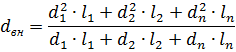 де d1…..dn – діаметр ділянок, мм; l1…..ln – довжина ділянок, м.